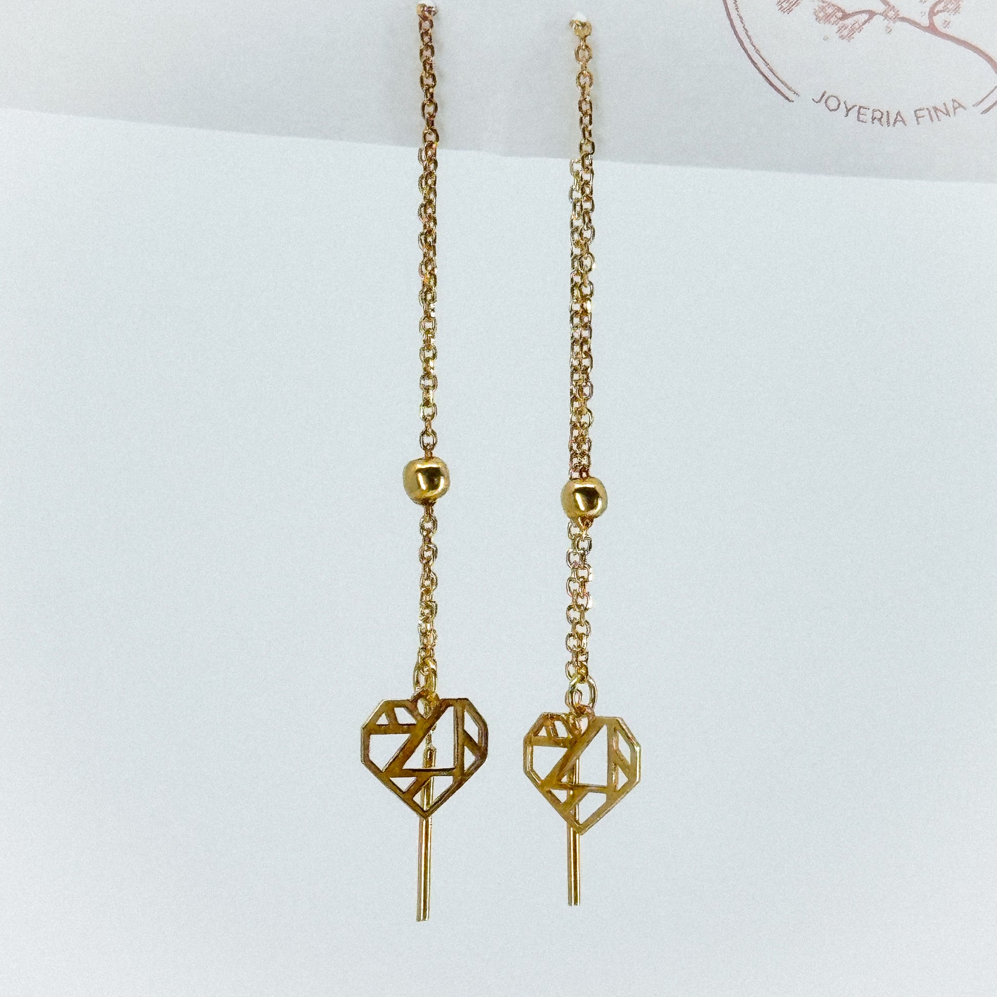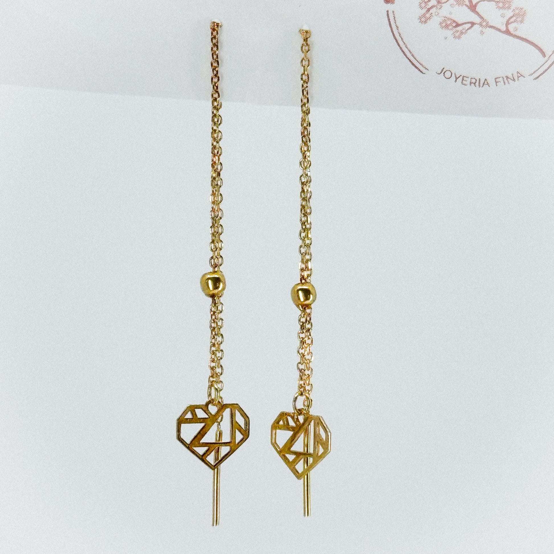 Los aretes Corazón Trenzado están elaborados en oro sólido de 18 quilates y presentan un delicado diseño largo con un dije de corazón tramado en su interior, símbolo de amor, unión y elegancia atemporal.