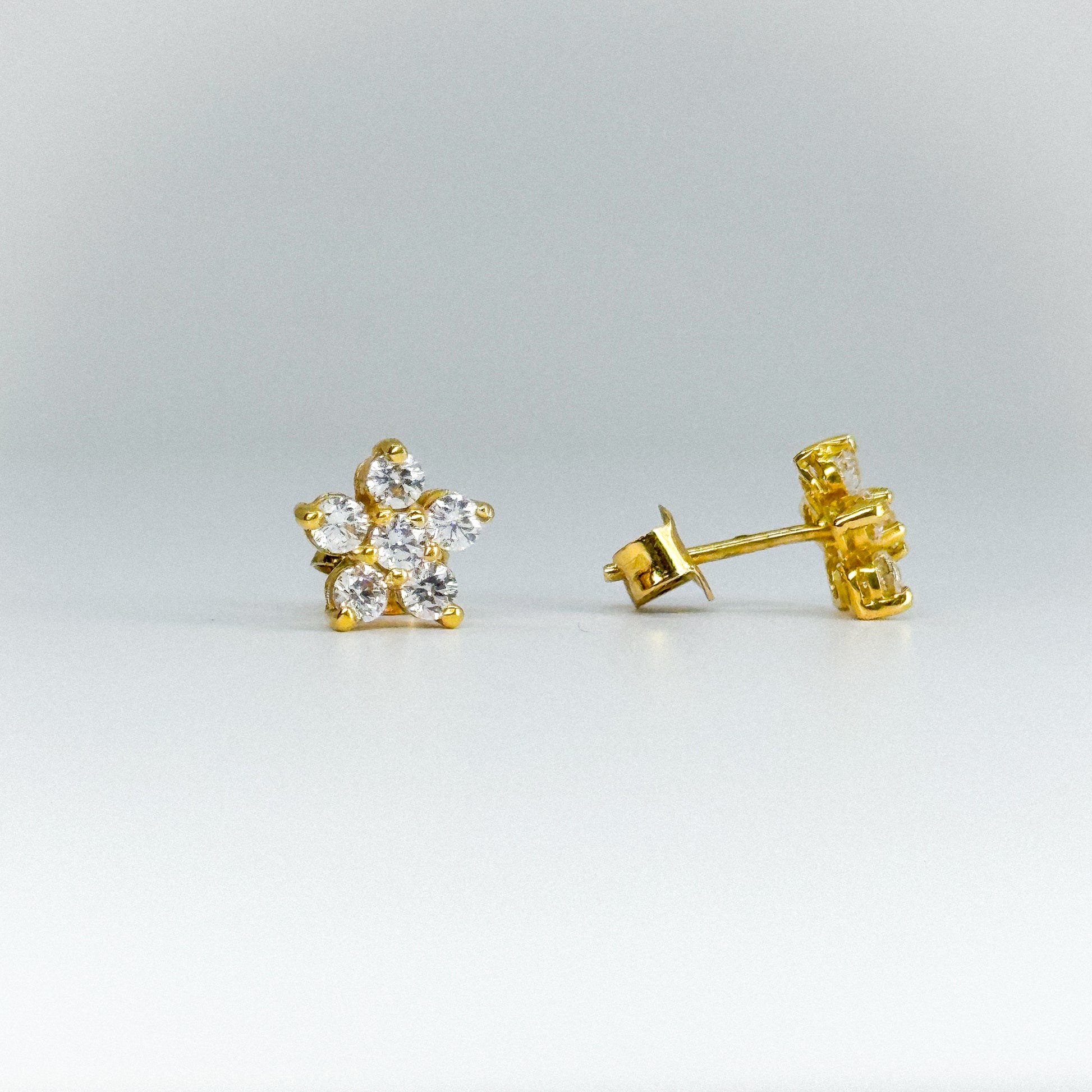 Clásicos y encantadores, estos aretes en forma de roseta están elaborados en oro de 18 quilates y embellecidos con brillantes circones blancos que aportan un destello delicado y femenino. Su diseño atemporal resalta la elegancia natural de quien los lleva, convirtiéndolos en una pieza ideal para toda ocasión, desde el uso diario hasta eventos especiales.