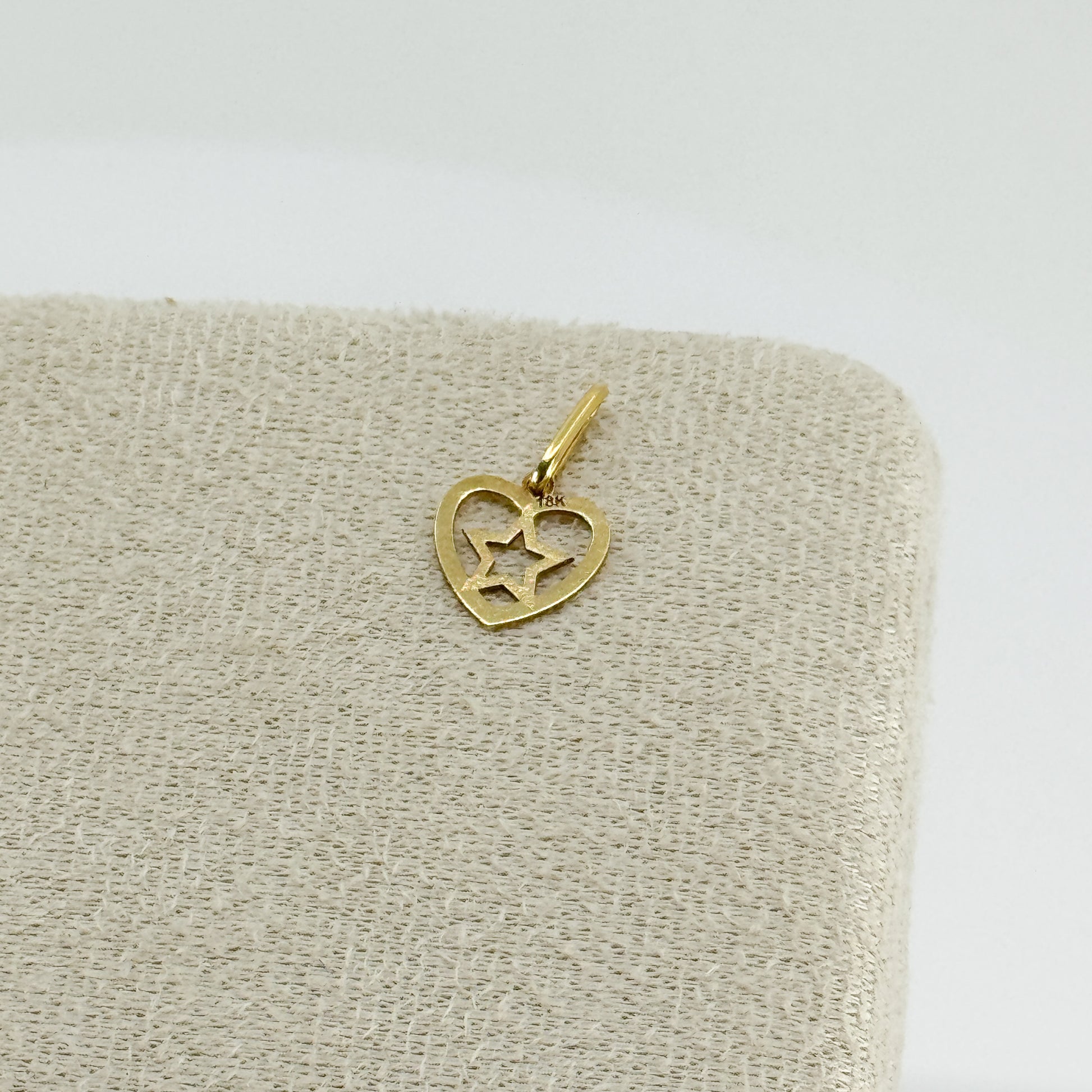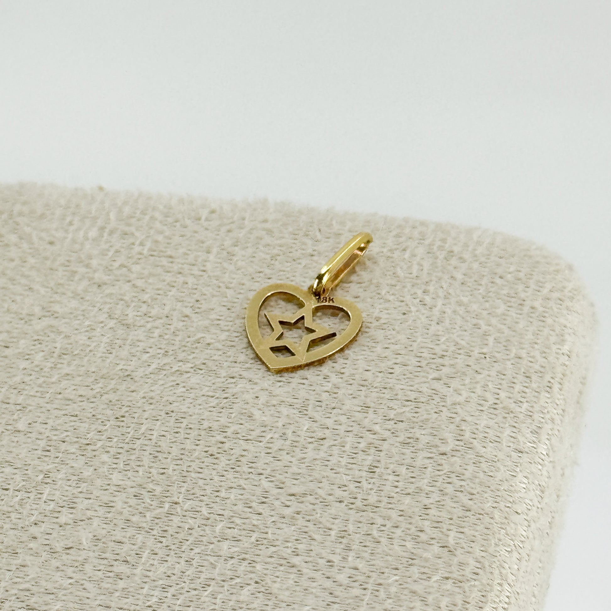 El dije Corazón Estelar está elaborado en oro 18k y combina dos símbolos llenos de significado: un delicado corazón que representa amor y protección, y en su centro una estrella calada, que simboliza guía, luz y esperanza.