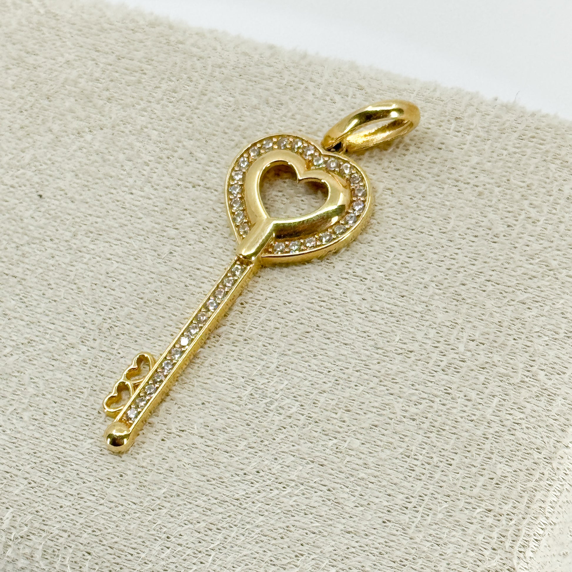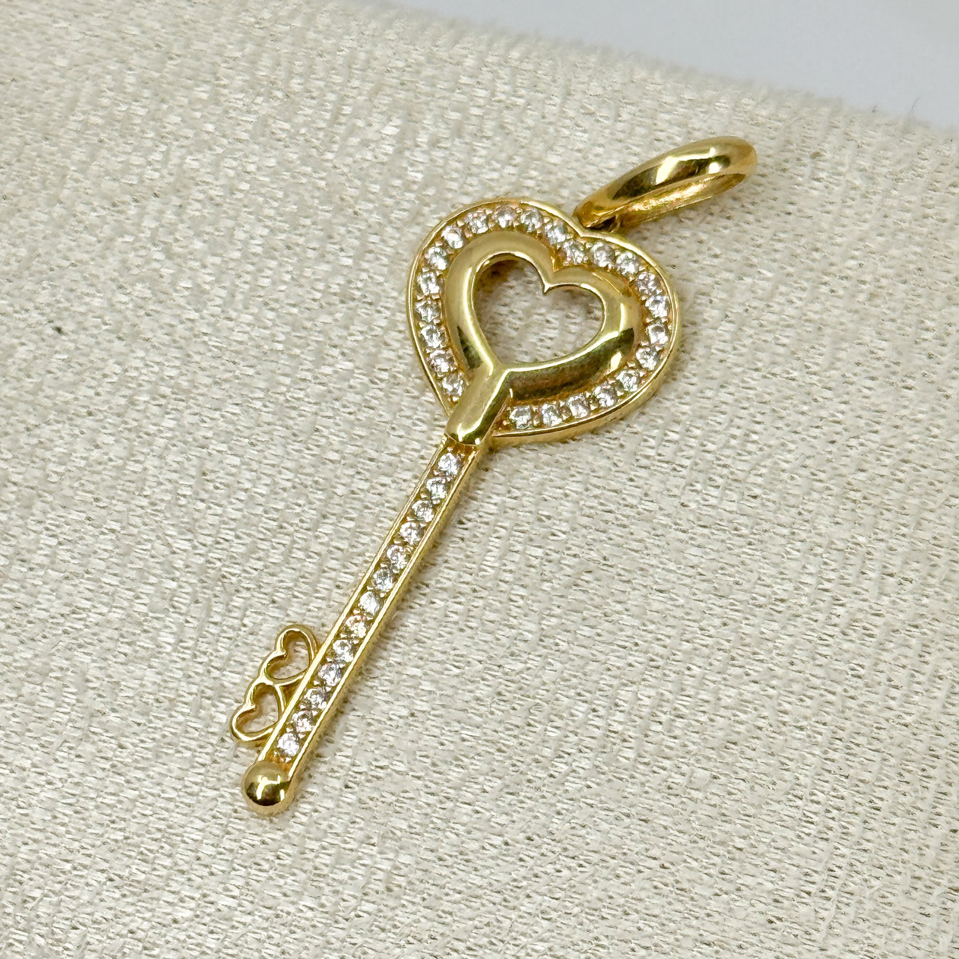 Abre la puerta a los momentos más especiales con nuestro Dije Llave Corazón Brillante en oro 18k. Su diseño combina la silueta romántica de un corazón con la forma clásica de una llave, adornada con cristales que aportan brillo y sofisticación.