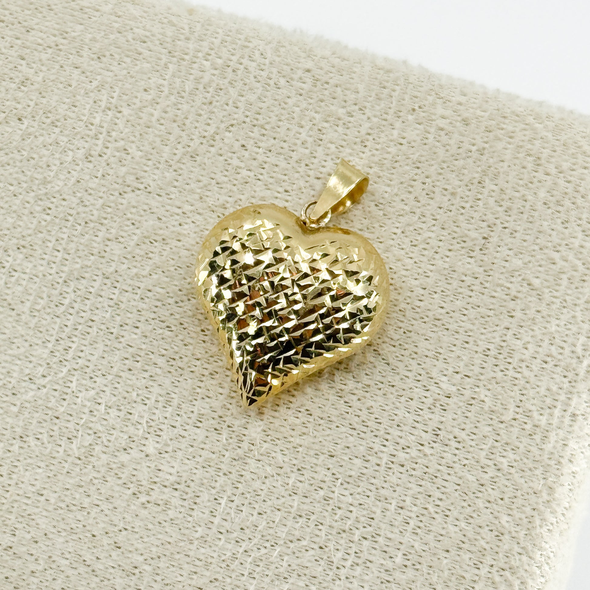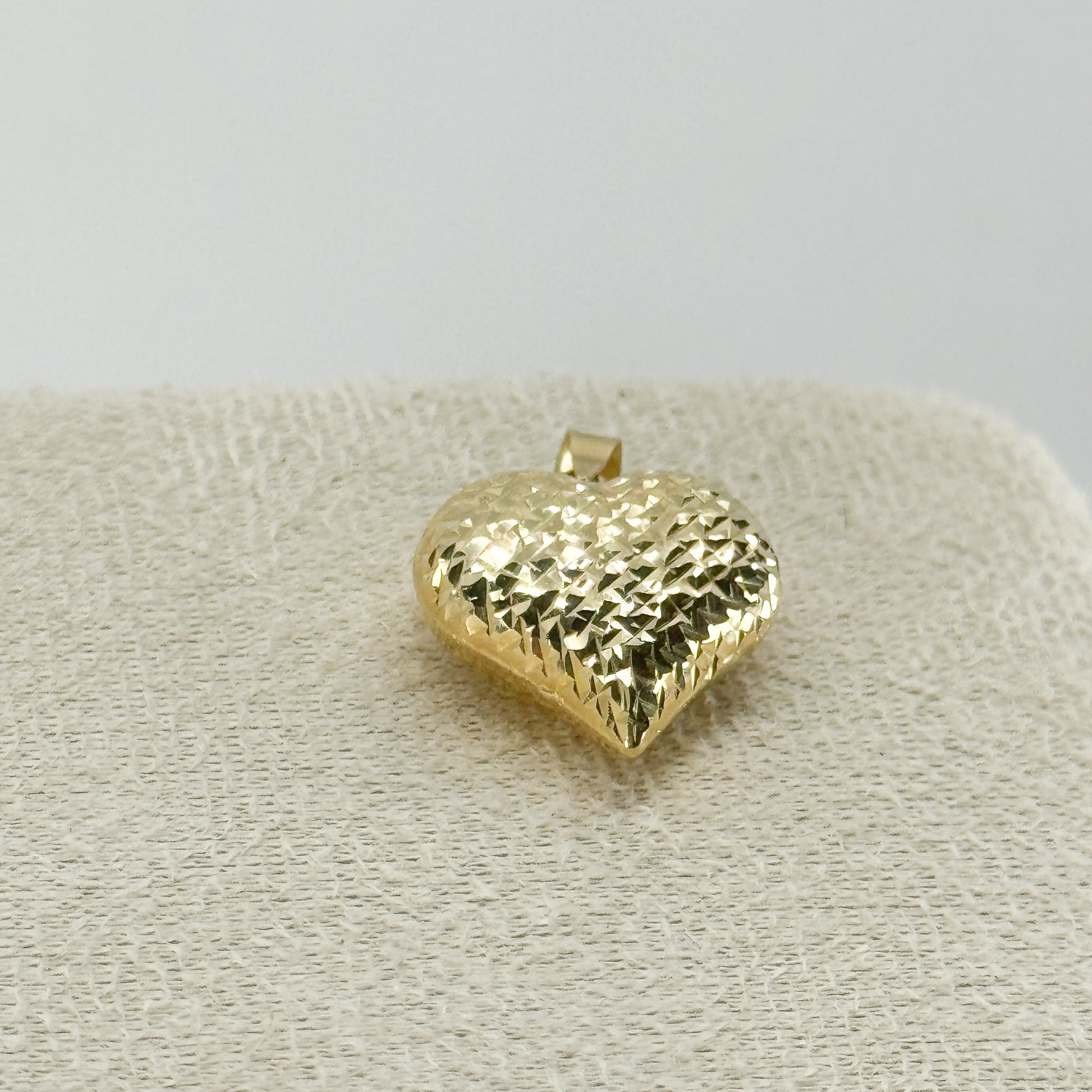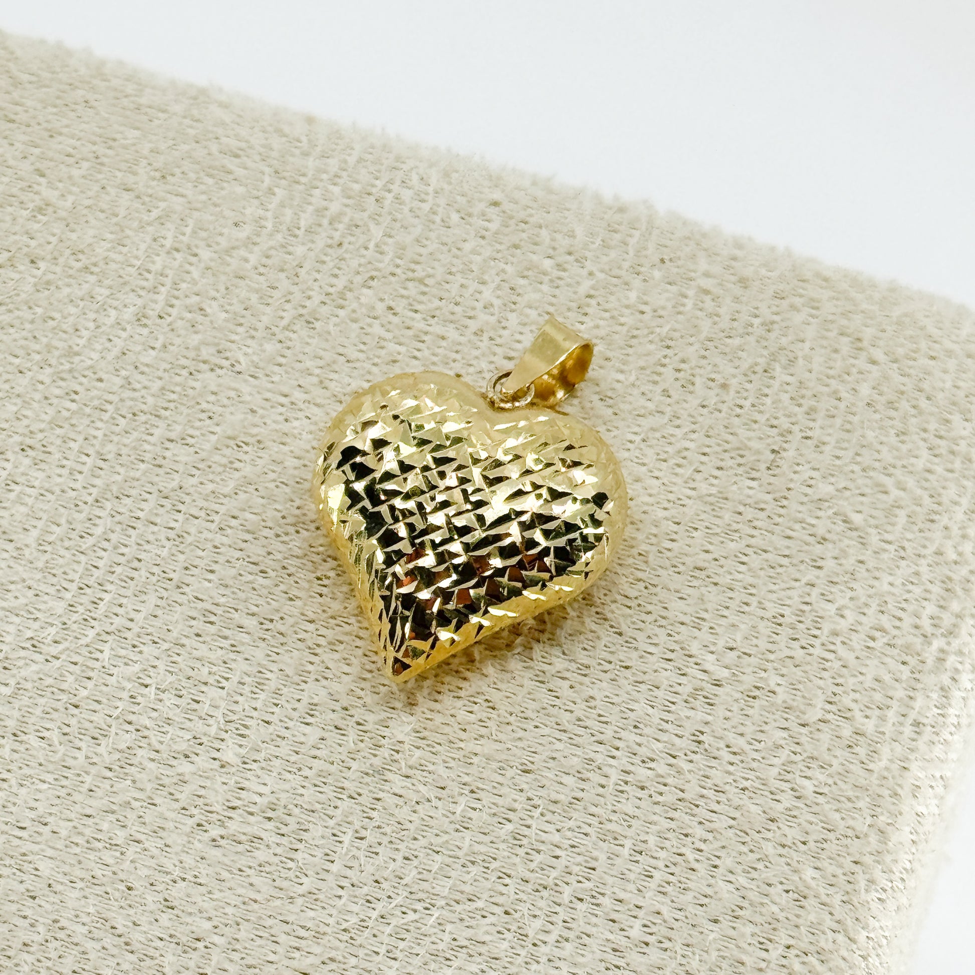 El Dije Heart Bombé Facetado es una pieza impactante y llena de brillo. Su diseño combina un corazón grande y bombeado con un acabado facetado que crea destellos intensos al moverse, dándole una apariencia sofisticada, moderna y altamente llamativa.
