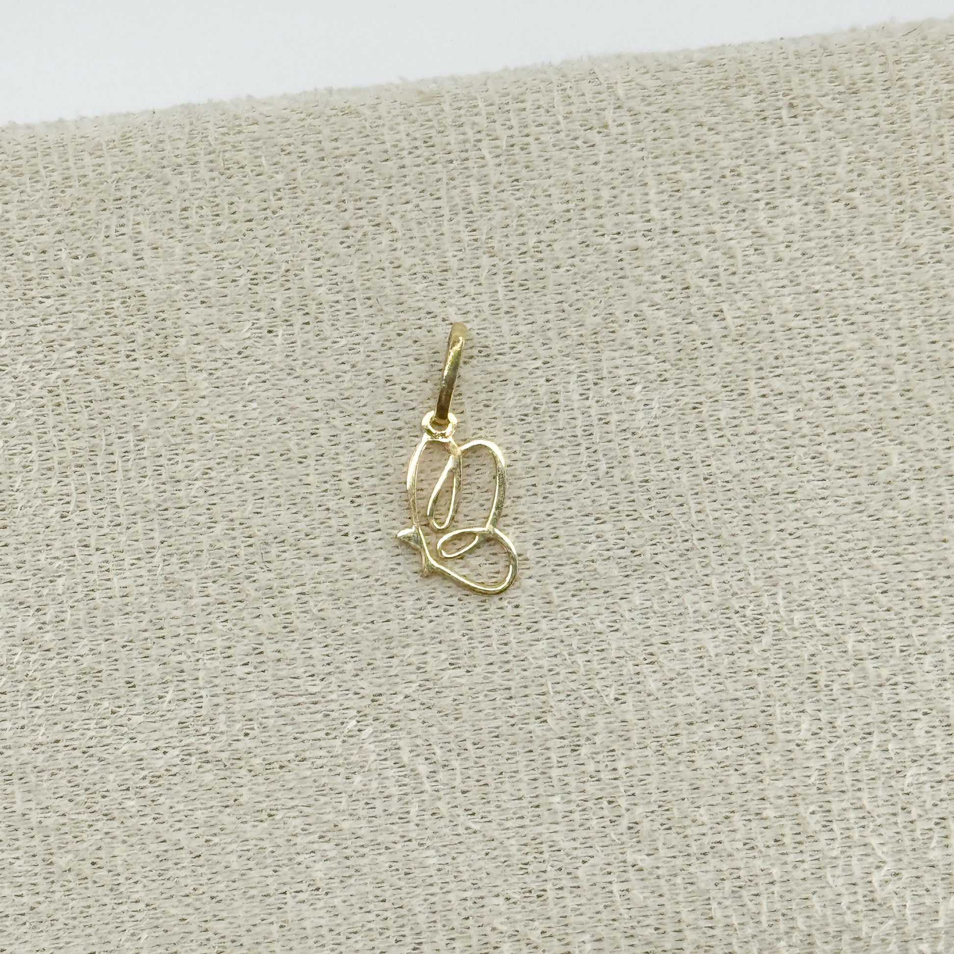 Dije de mariposa calada en oro 18k, representada de perfil para resaltar la delicadeza y amplitud de sus alas. Una pieza sofisticada y ligera que simboliza libertad y elegancia, perfecta para añadir movimiento y estilo a tu look.