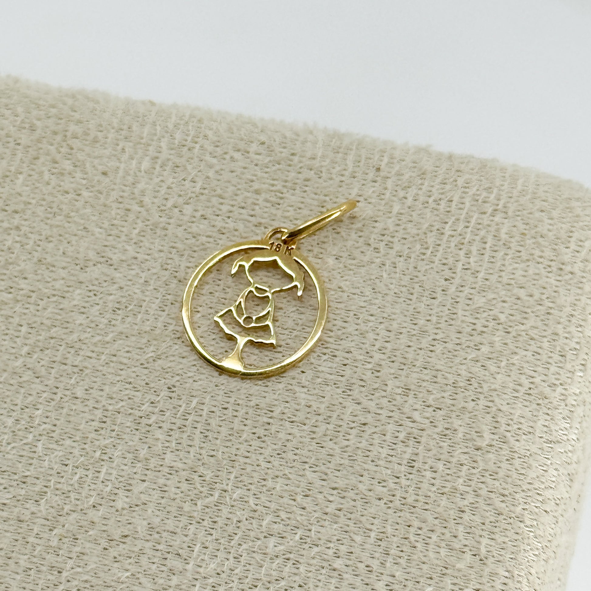Dije de oro 18k con silueta de niño sobre placa circular, delicadamente trabajado para resaltar los detalles. Una pieza tierna y sofisticada, perfecta para llevar cerca del corazón o combinar con otras joyas.