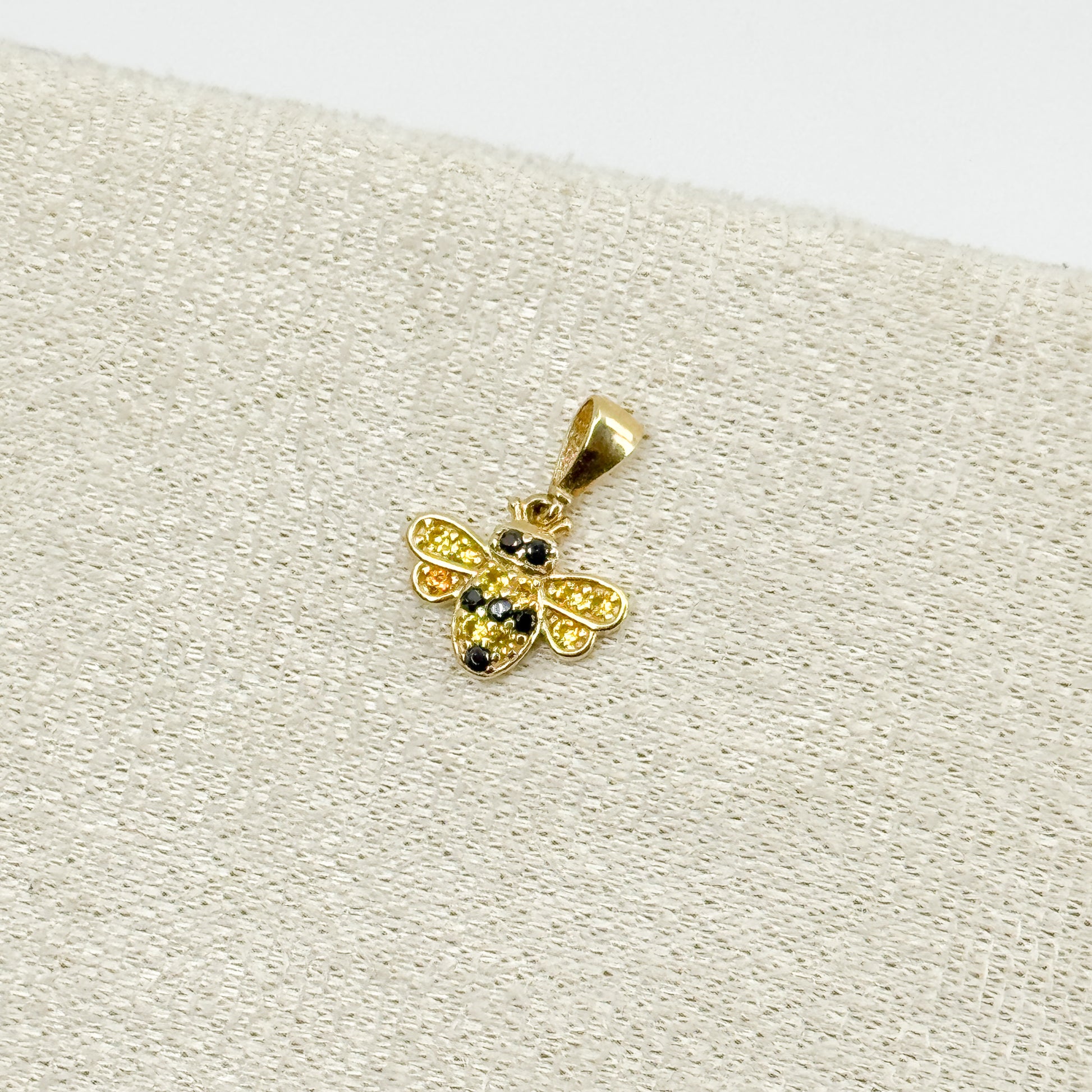 El Dije Abeja “Brillo de Miel” combina delicadeza y encanto en una pieza única. Su diseño está formado por cristales negros y dorados que dan vida a la silueta de la abeja, creando un contraste luminoso y lleno de movimiento.